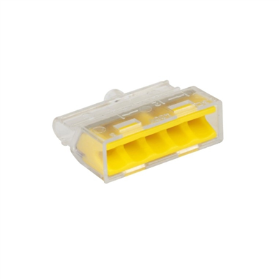 La référence 70055 de la marque Eur’Ohm est une boîte de 100 connecteurs transparents à 5 entrées, également appelés bornes de connexion rapide Fast Lock. Ces connecteurs sont conçus pour le branchement rapide et sécurisé de fils électriques rigides de sections comprises entre 1,5 mm² et 2,5 mm².