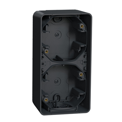 Boîte 2 postes verticale en saillie Mureva Styl, gris, adaptée aux installations exigeantes. Robuste et étanche, parfaite pour les environnements difficiles.