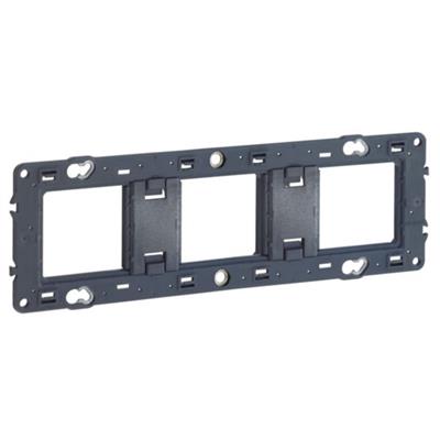 Ce support universel Mosaic permet l’installation de 3 postes ou 6 à 8 modules sur boîte d’encastrement ou cadre saillie. Idéal pour une fixation robuste et précise.